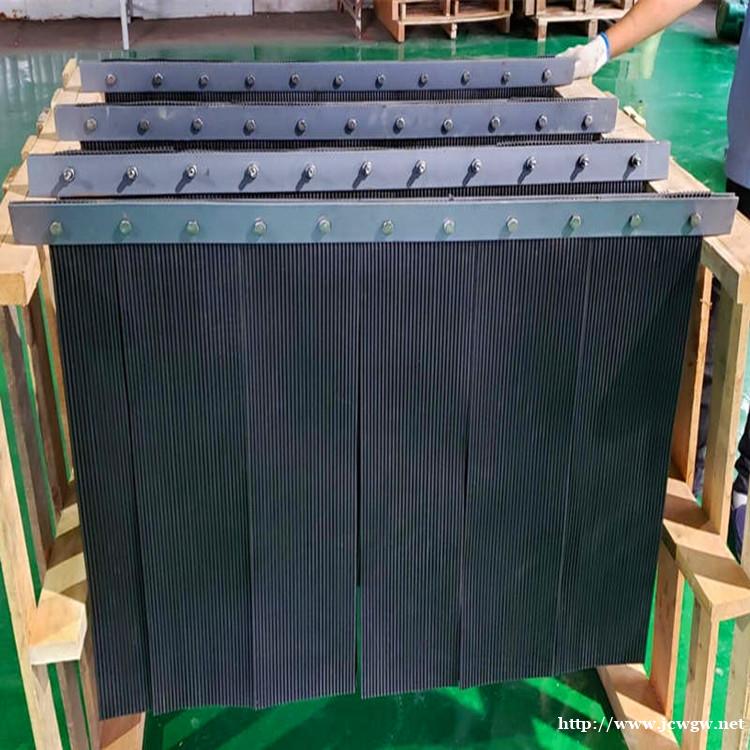 产品加工:防尘帘的宽度,高度,厚度可以考虑导料槽的尺寸进行定做,定做时有-定的工期安排,届时请与车间敲定。