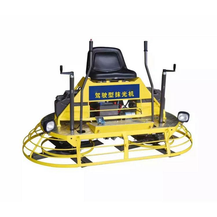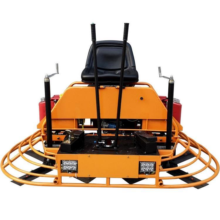 这款抹光机适合大大小小的不同的施工场地,也可以在室内外的作业,像是厂房,仓库,广场,停车场这些地方的施工都很轻松。相对于施工者来说更省劲,它也很大程度上缩短了施工的时间,效率非常非常的高。坐着开的磨光机四有一个汽油机驱动的转盘,一个机器有2个转盘,每个转盘上装有4个抹刀,抹刀倾斜的方向和磨盘是一样的,人操作2个手柄,启动机器就可以进行工作了。