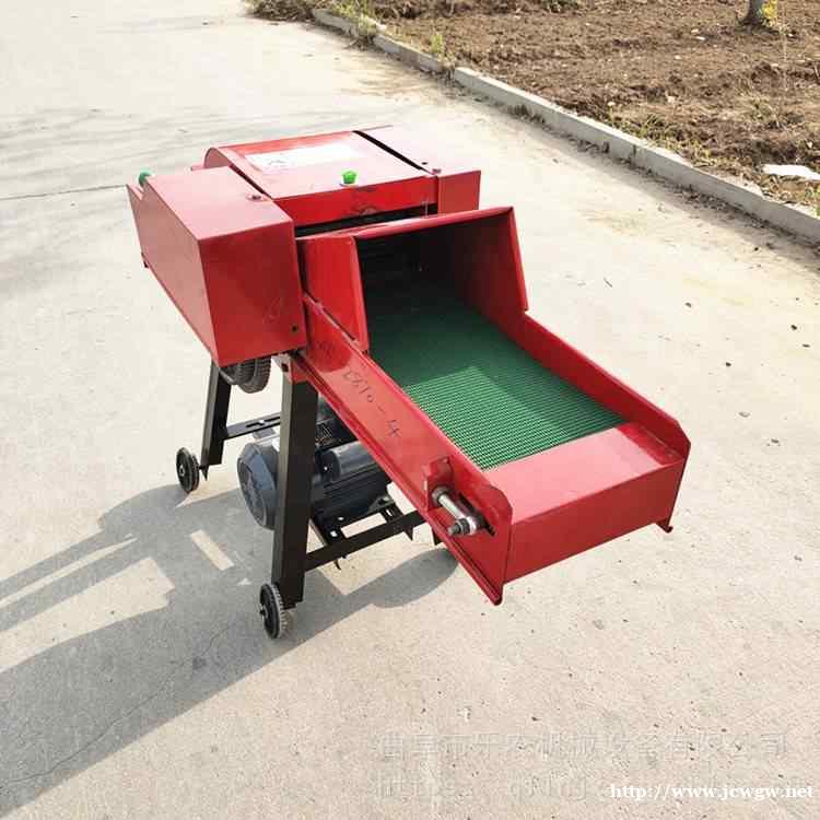 机器介绍:用于铡切青(干)玉米秸秆、稻草等各种农作物秸秆及牧草的农业畜牧机械。工作原理:由电机作为配套动力。将动力传递给主轴,主轴另一端的齿轮通过齿轮箱、万向节等将经过调速的动力传递给压草琨,当待加工的物料进入上下压草琨之间时,被压曹锟夹持并以一定的速度送入铡切机构,经高速旋转的刀具切碎后经出草口抛出机外。