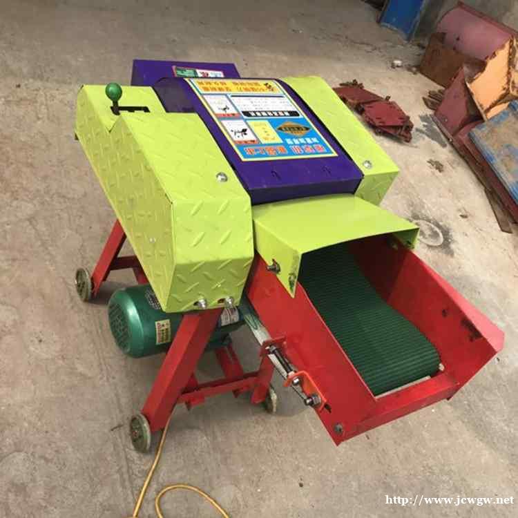 机器介绍:用于铡切青(干)玉米秸秆、稻草等各种农作物秸秆及牧草的农业畜牧机械。工作原理:由电机作为配套动力。将动力传递给主轴,主轴另一端的齿轮通过齿轮箱、万向节等将经过调速的动力传递给压草琨,当待加工的物料进入上下压草琨之间时,被压曹锟夹持并以一定的速度送入铡切机构,经高速旋转的刀具切碎后经出草口抛出机外。