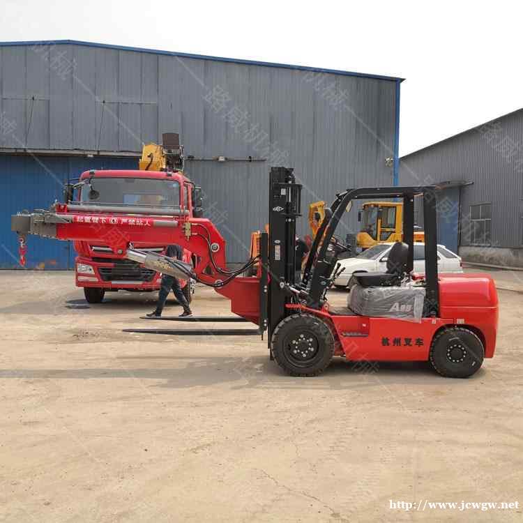 叉车吊是现有叉车的基础上进行改造叉前吊。是以内燃机叉车在保持全部叉车机械性能的基础上进行改装的一种上下摆动伸缩式的小型起重机械,叉车配上了它即保全叉车的装卸功能,又弥补了叉车所不能吊的重物装卸工作,操作简便、可靠、灵活。叉车吊杆可摆动角度实现了高空取物。吊杆在载重情况下可伸缩实现设备货物定位,吊杆可往下折。不占空间,叉车可在非常小的空间进行移动,转完,调头实现工作。