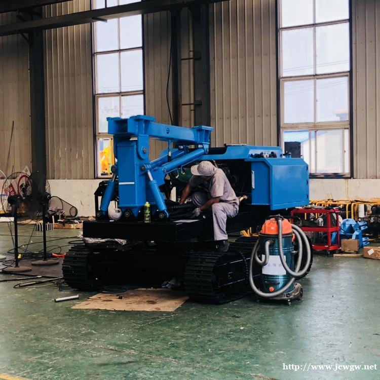 Z常见此款光伏打桩机适用于各地的太阳能光伏工程基础建设中。有的是针对土层进行的螺旋钻孔作业,每个孔大约1分钟的成孔时间,效率高。有的则是针对岩石地层进行的连接空压机后的潜孔入岩作业,每个孔大约3-5分钟的成孔时间,这个效率与空压机的大小有直接的关系。还有的则是直接把光伏支架压进地里面,这种施工方法在很多地方都有存在。另外不少地方还进行把地螺丝、锚杆直接钻进地里面不在拔出。这种也是光伏打桩机施工的一种常见工艺。