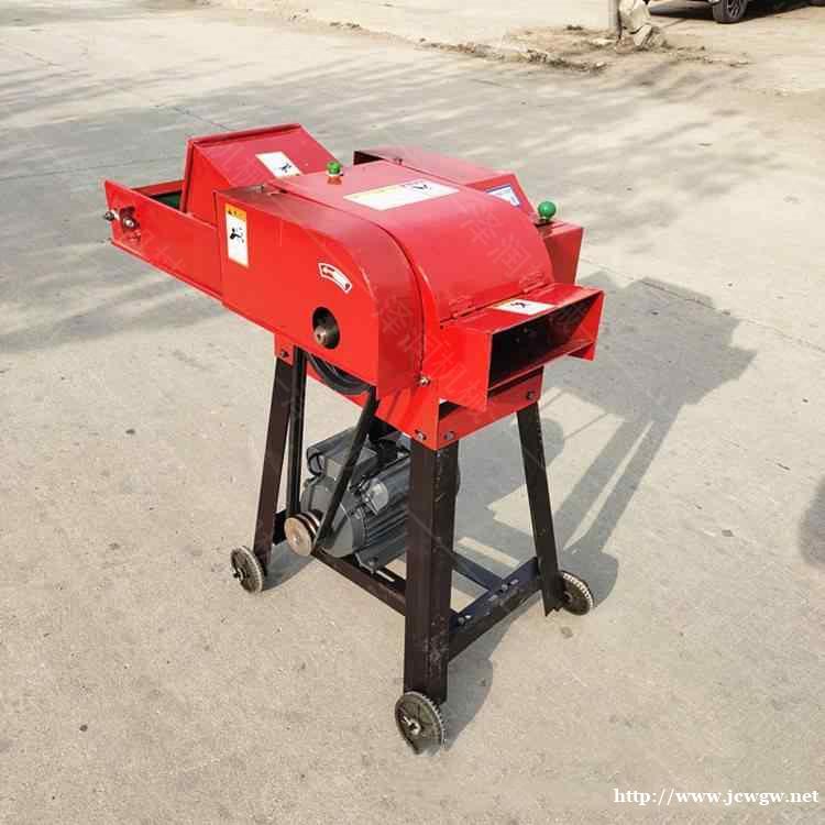 机器介绍:用于铡切青(干)玉米秸秆、稻草等各种农作物秸秆及牧草的农业畜牧机械。工作原理:由电机作为配套动力。将动力传递给主轴,主轴另一端的齿轮通过齿轮箱、万向节等将经过调速的动力传递给压草琨,当待加工的物料进入上下压草琨之间时,被压曹锟夹持并以一定的速度送入铡切机构,经高速旋转的刀具切碎后经出草口抛出机外。
