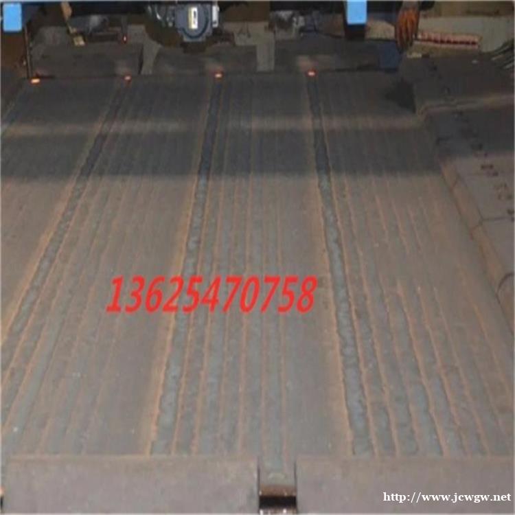 耐磨钢板合金耐磨层和基体之间是冶金结合。通过专用设备,采用自动焊接工艺,将高硬度自保护合金焊丝均匀地焊接在基材上。复合层数一层至两层以至多层,复合过程中由于合金收缩比不同,出现均匀横向裂纹,这是耐磨钢板的显著特点。